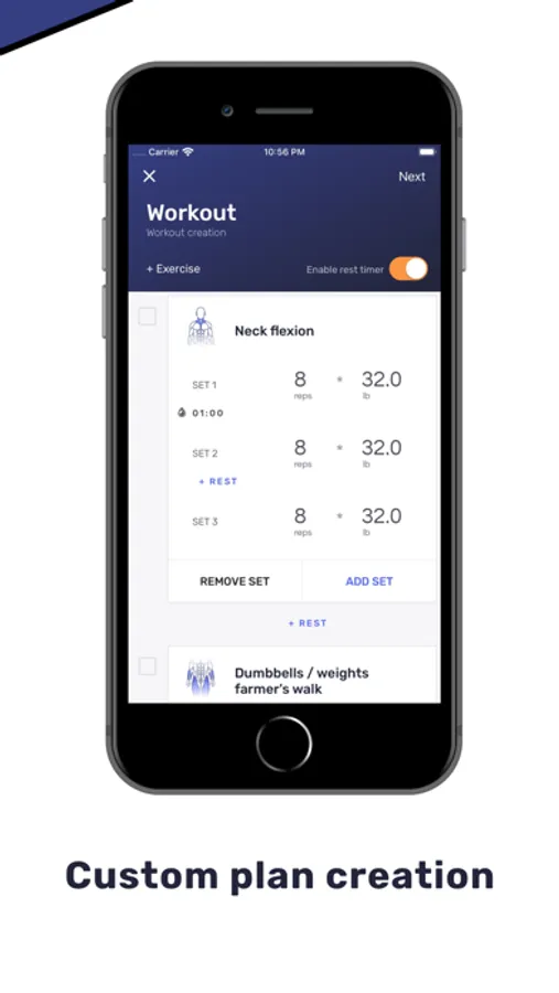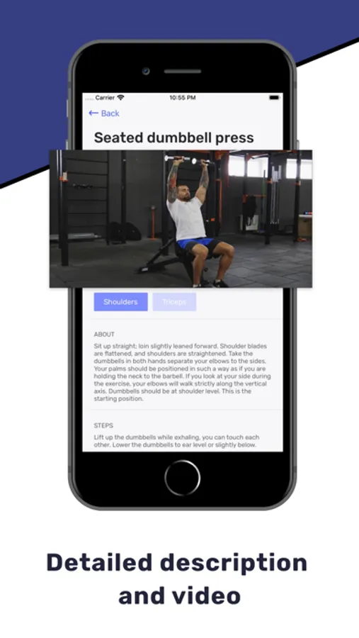- 250+ exercises for all muscle groups with a detailed description and video that will help you to perform the exercises in a correct and healthy manner