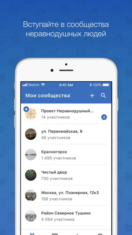 Через сообщества вы сможете общаться с другими неравнодушными гражданами по теме сообщества, решать проблемы города или отправлять свои запросы ответственным лицам и в целом менять свою жизнь и жизнь окружающих вас людей к лучшему.