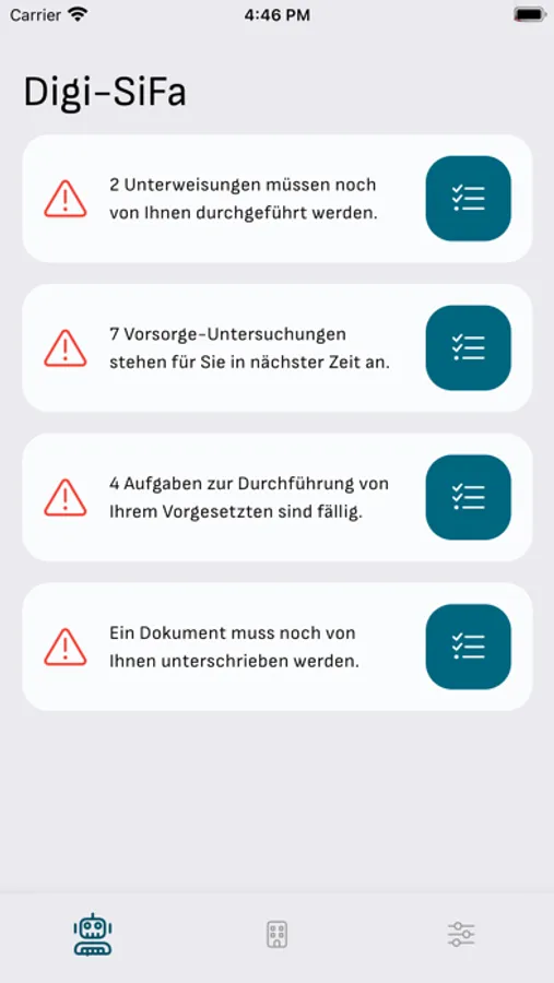 Die App von BG sicher ermöglicht es Ihnen, auf den Mitarbeiterbereich von BG sicher zugreifen zu können. Dadurch können Sie zugewiesene Aufgaben als durchgeführt oder kontrolliert markieren und Betriebsanweisungen einsehen bzw. sich anhören. Sie werden über anstehende E-Learning-Unterweisungen und wichtige Termine informiert.
