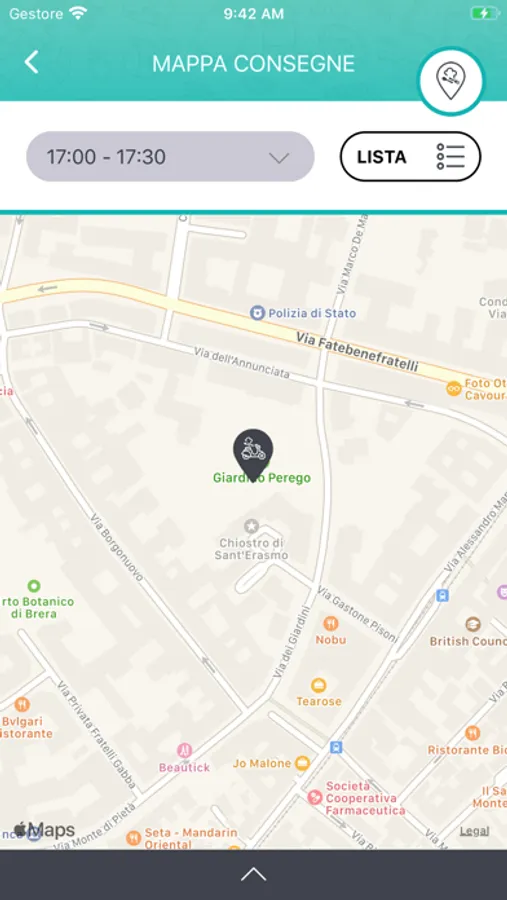 Ogni racer potrà visualizzare gli ordini da consegnare in base all’orario e alla zona di consegna e segnalare il recapito effettuato.