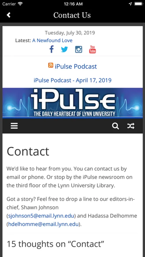 Read the latest Lynn University stories, connect to KnightRadio, listen to the latest iPulse Podcasts