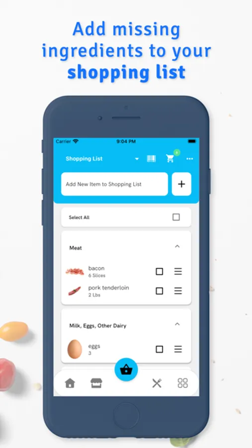 • Instantly add missing ingredients to your shopping list