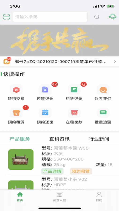 平台提供按天租赁、按次租赁两种租赁模式,分段式计费,满足不同客户的多样化需求。推动了托盘、周转筐等物流单元化载具租赁和循环共用体系建设,减少用户自购自用,大大带动了农产品的快速流通,减少了中间环节和货物损耗,提升供应链单元化水平。