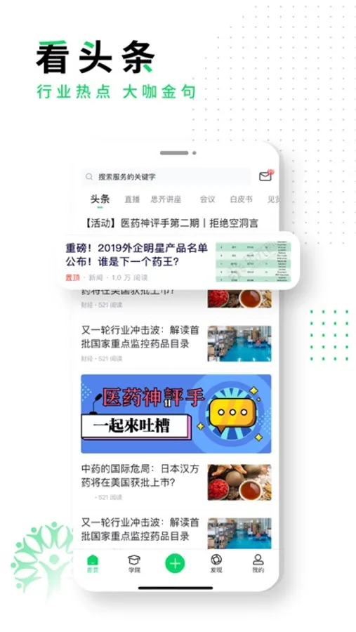 思齐圈资讯包括化药,中药,生物药,仿制药,创新药,器械,制剂,耗材等领域的医药公司的实时动态,涵盖医疗政策,准入,医学,政府事务,药物研发,市场,销售,绩效,培训等新信息。头条资讯实时更新,社区互动人人关注,满足不同专业领域医药人士的专业要求。