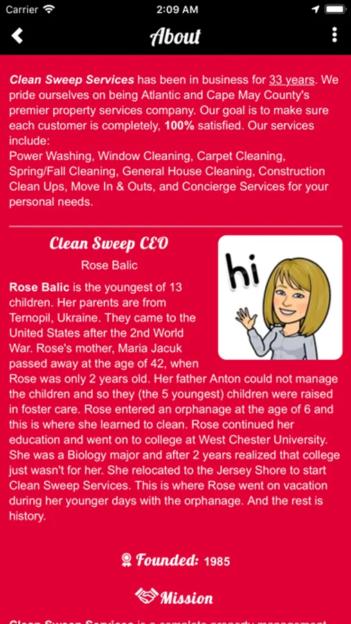 Clean Sweep Services has finally gone mobile! As a client, or potential client, you will now have instant access to all of our amazing features and services. Inquire about Cleaning Services, browse our "On the Job" photos, watch our Promotional Video, learn about our founder Rose Balic and the birth of South Jersey's premiere cleaning company. Our Website, Facebook, and Map Location is all conveniently available, as well as OneTouch calling. You can also buy Gift Cards and check out our latest Promotions, which is sure to enhance your experience with Clean Sweep. Download the App now to get started on your cleaning journey!