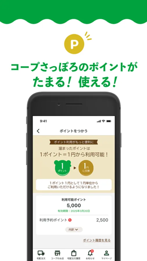 トドックアプリから、たまったポイントをコープさっぽろのサービス(※)のお支払いにご利用できるようになりました。