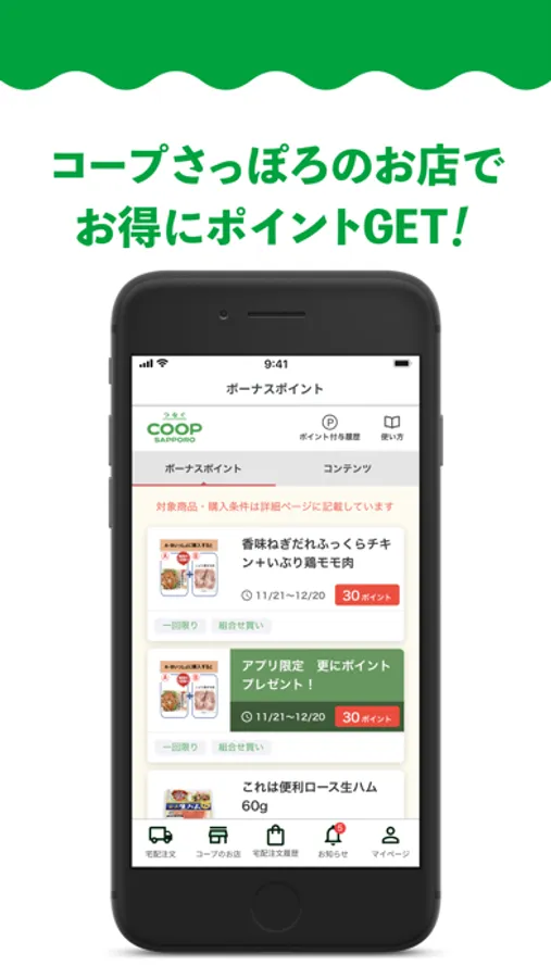 コープさっぽろのお店で対象商品を購入すると、よりお得にポイントがもらえます。