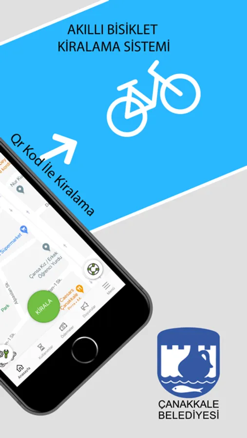 4-Uygulama anasayfasında tek şifre butonuna tıklayarak tek şifre oluşturabilirsiniz. Bu şifreyi parktaki tuş takımından girerek bisiklet alabilirsiniz. Qr kod ile kiralama butona basıp bisiklet üzerindeki QR kodu okutarak bisiklet alabilirisiniz.