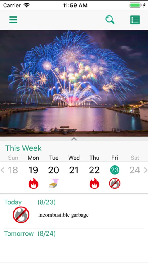 Receive alerts about the types of garbage scheduled to be collected on the day prior to collection and on the day of collection. You can set the alert time freely.