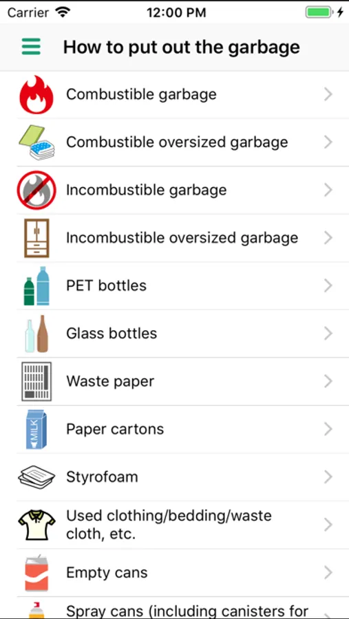 This function allows you to check the main items of garbage and how to put them out by type of garbage.