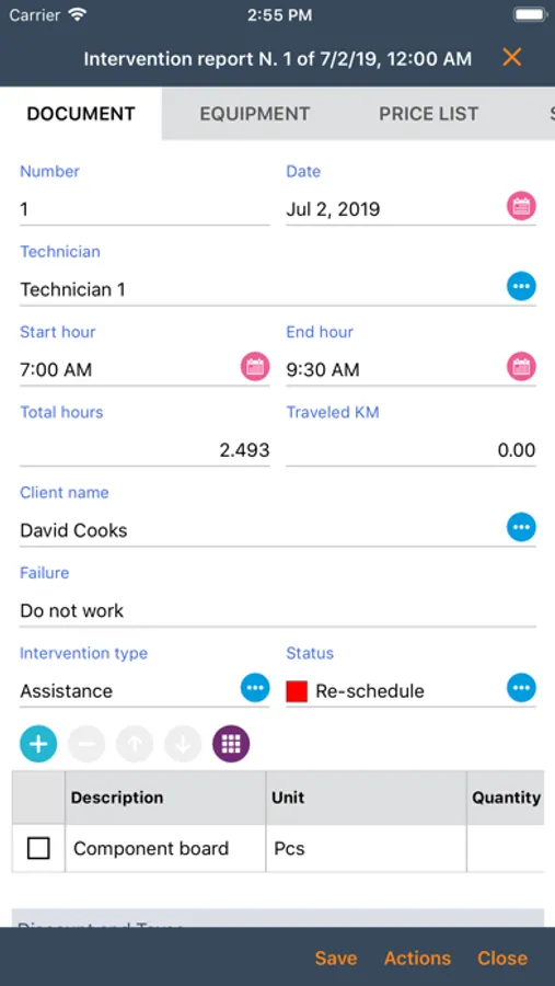 Manage your service reports directly on site, record customers sign on smartphone or tablet and send by e-mail in PDF.