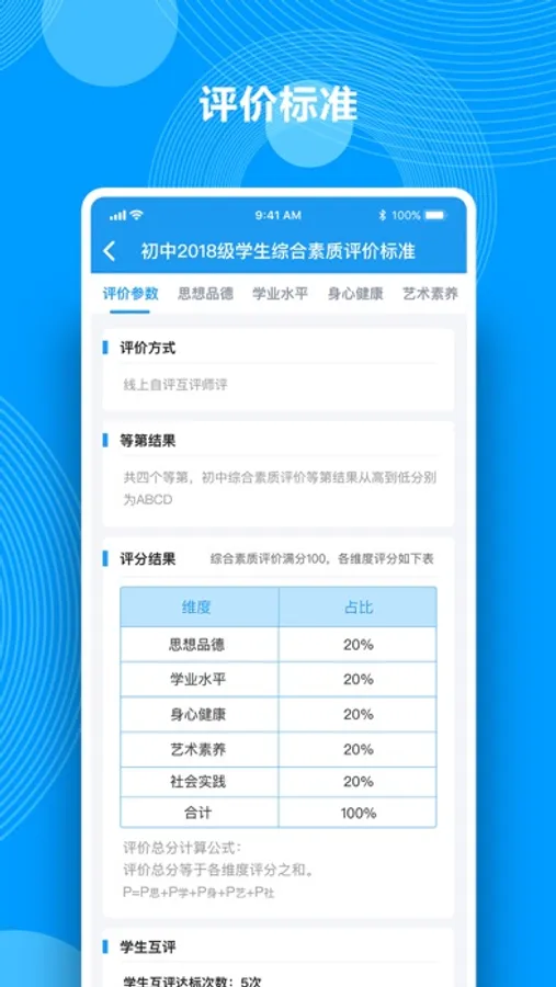 综合素质评价App,是针对教育行政部门、学校综合素质评价工作推出的信息化管理系统的移动端。App紧密结合国家相关政策,对学生发展状况进行观察、记录、分析,打造学生多维度、多层次、多方式的评价和管理,全面助力学生综合素质整体提升。