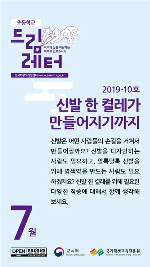 [드림레터]는 교육부와 국가평생교육진흥원(전국학부모지원센터)에서 발행하는 학부모 진로소식지입니다. 교육부와 국가평생교육진흥원(전국학부모지원센터)에서는 학부모를 위한 다양한 형태의 진로교육지원 콘텐츠를 개발하고 있습니다.