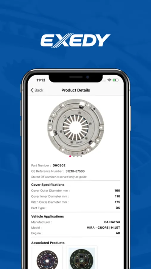 Finding EXEDY’s products is made easier. You can find your product now on the go. Just key in your EXEDY part number and you will be able to see its specifications, vehicle applications and any other relevant products.