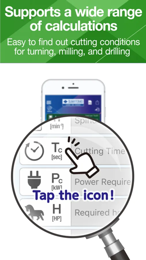 The Sumitomo Electric calculation function app "Sumitool Calculator" handles the complex equations used for turning, milling, and drilling.