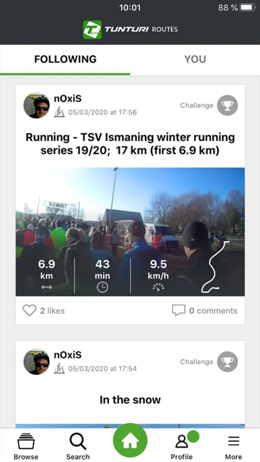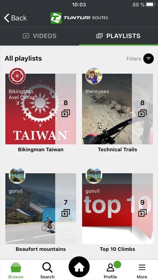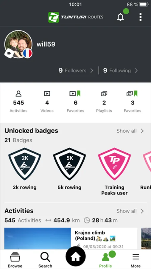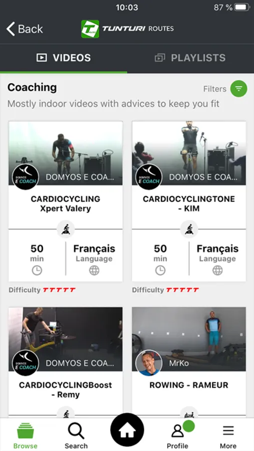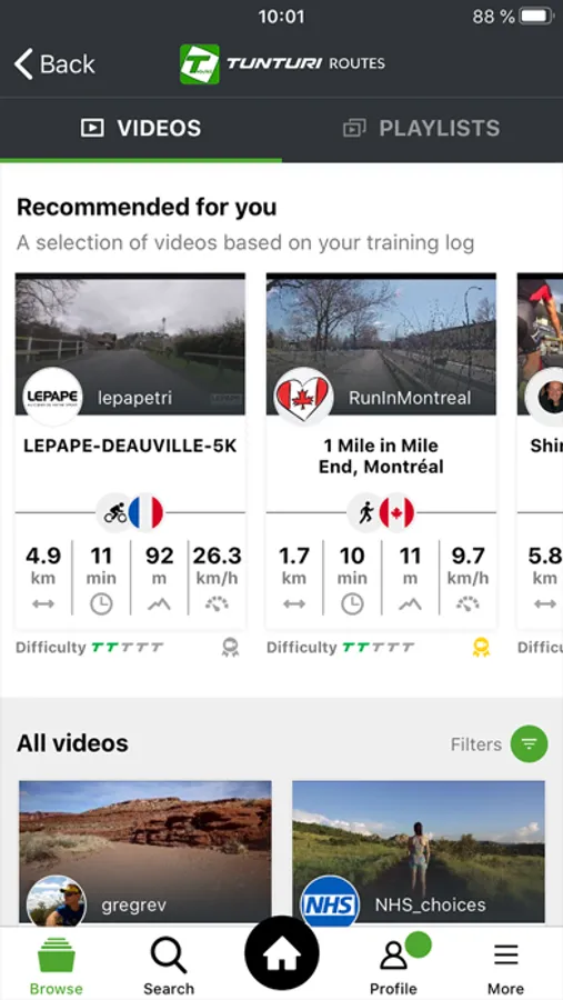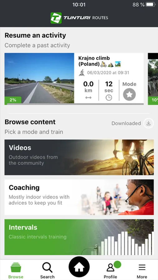 Tunturi Routes the only fitness app with user generated video content, that always gives you access to 15 videos for free.