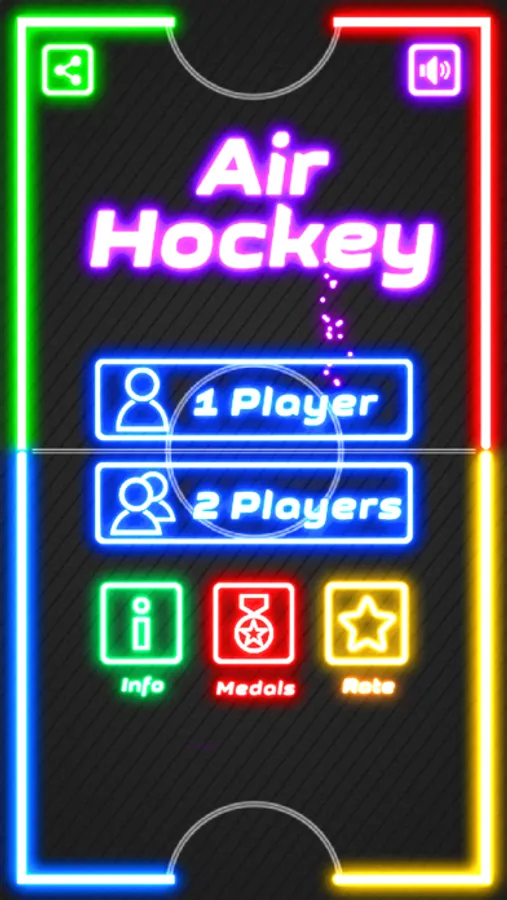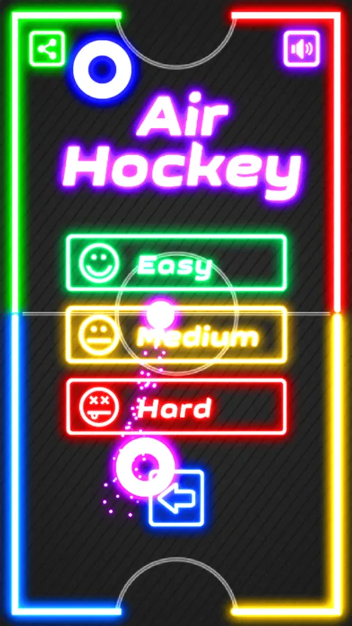 - air hockey has amazing graphics and colors: game has the neon dark skin;