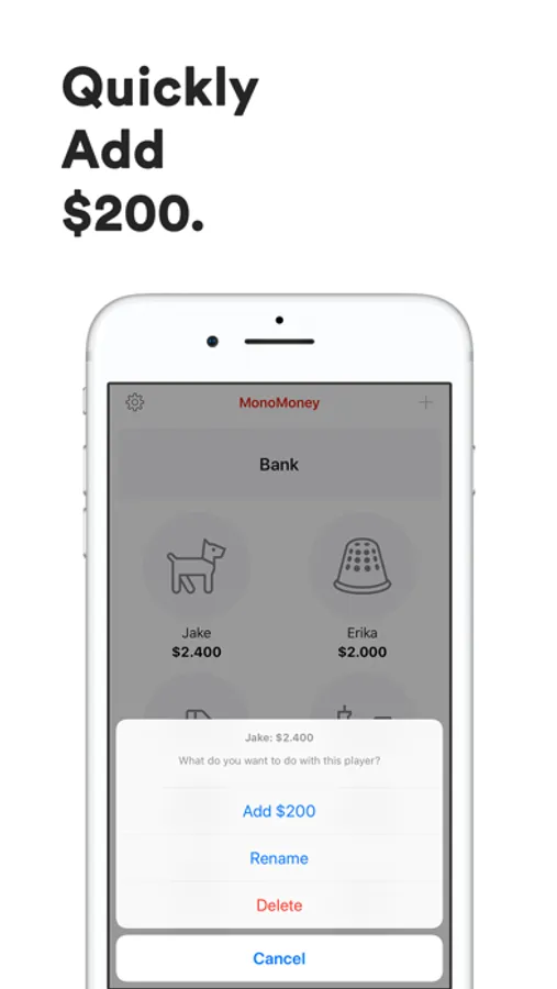 • Quickly add $200 when a player passes "GO" by tapping on him