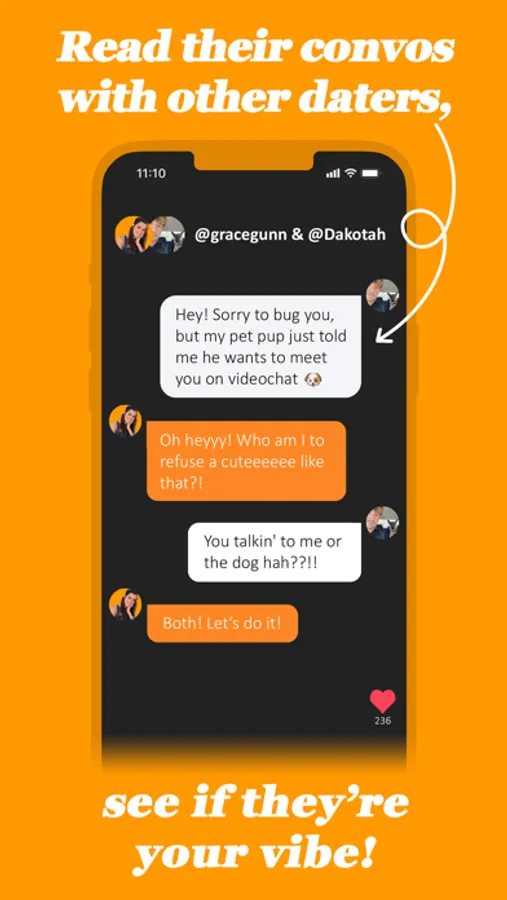 1. SEE WHAT THEY'RE LIKE *BEFORE* YOU SAY HELLO: People are more than a headshot and bio! By seeing their past conversations too you can vibe check a profile BEFORE you say hello - which means less dating disappointments, more matching with people you actually like! Transparency is a great douchebag filter!