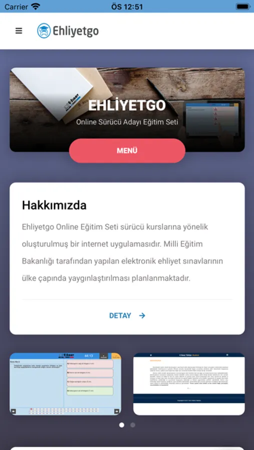 Ehliyetgo Online Eğitim Seti sürücü adaylarına yönelik oluşturulmuş bir sürücü kitabı uygulamasıdır. Uygulamanın temel amacı ehliyet sınavlarına sıkılmadan interaktif bir şekilde hazırlanmaktır.