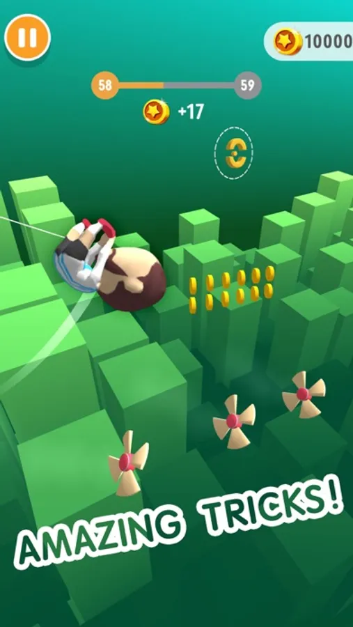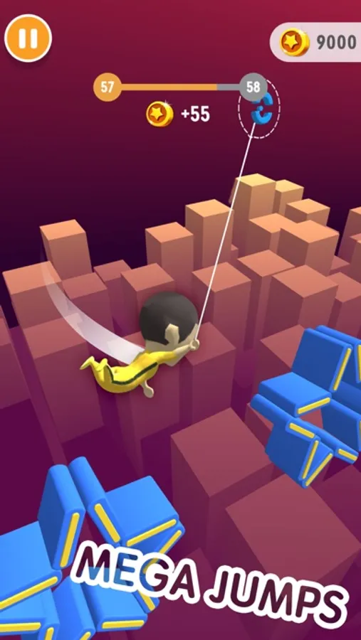 Hold the screen with finger and swing, release finger and leap to the end. Clever use of various props to help you reach the end.