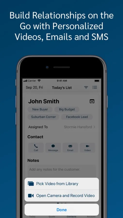 Send personalized videos, emails and text messages to borrowers and referral partners directly from the App