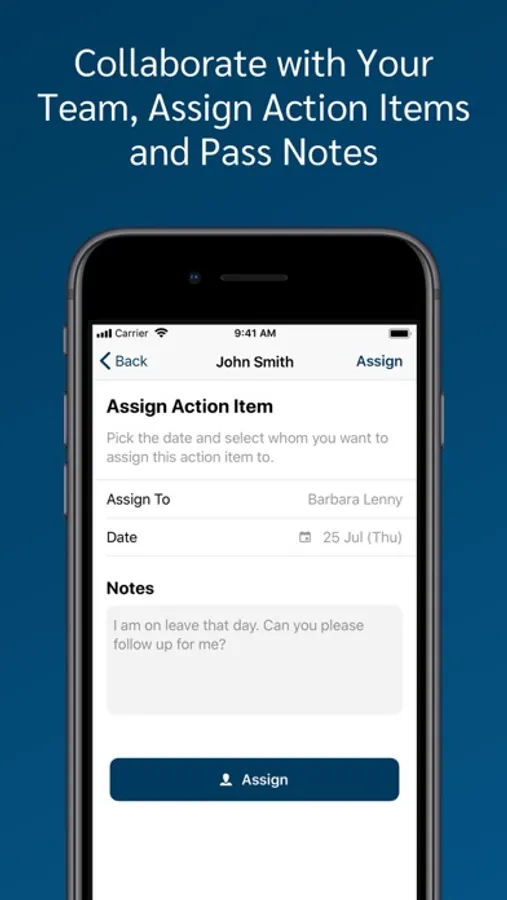 Collaborate with your team and stay updated by assigning action items and passing notes
