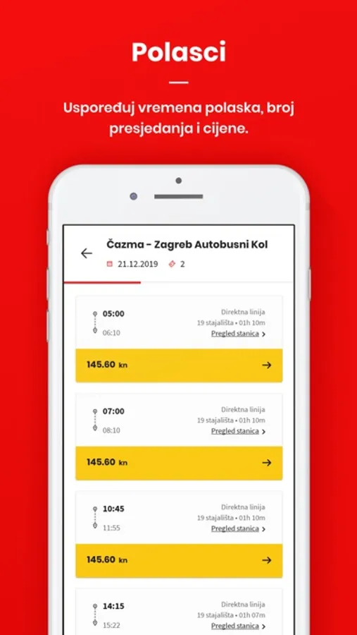 - Search through destinations within Croatia and abroad, choose from a multitude of departure times, routes and prices