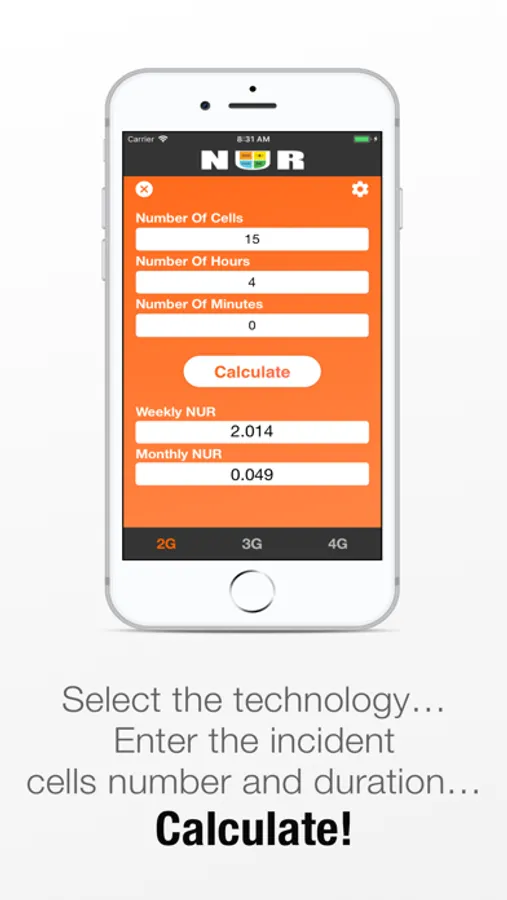 The NUR Calculator App is a calculator application that calculates the network unavailability ratio of any incident given its duration and total number of cells.