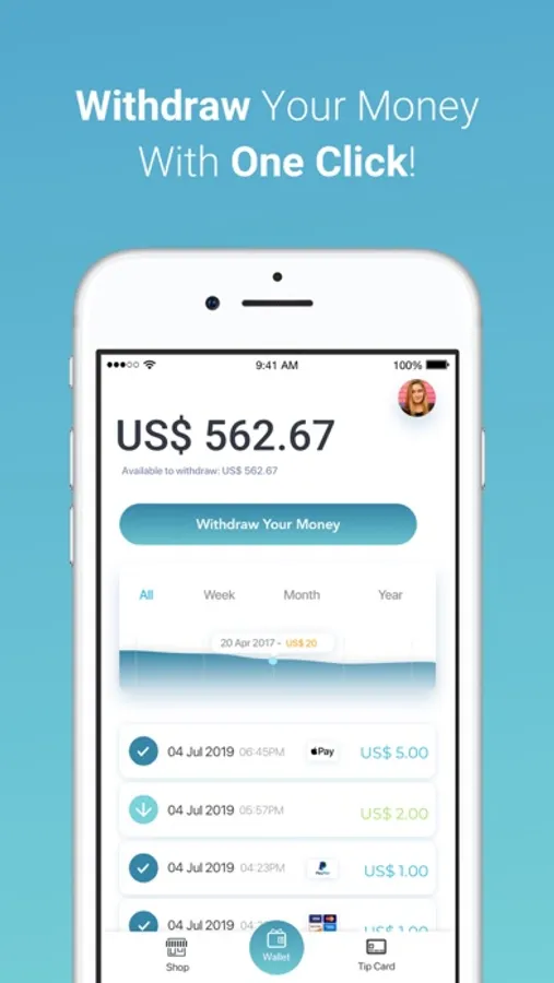 Just present the QR Code on your device or card to your client and get instantly your tipped. Your clients don't need to have the app, just their smartphone with a camera.