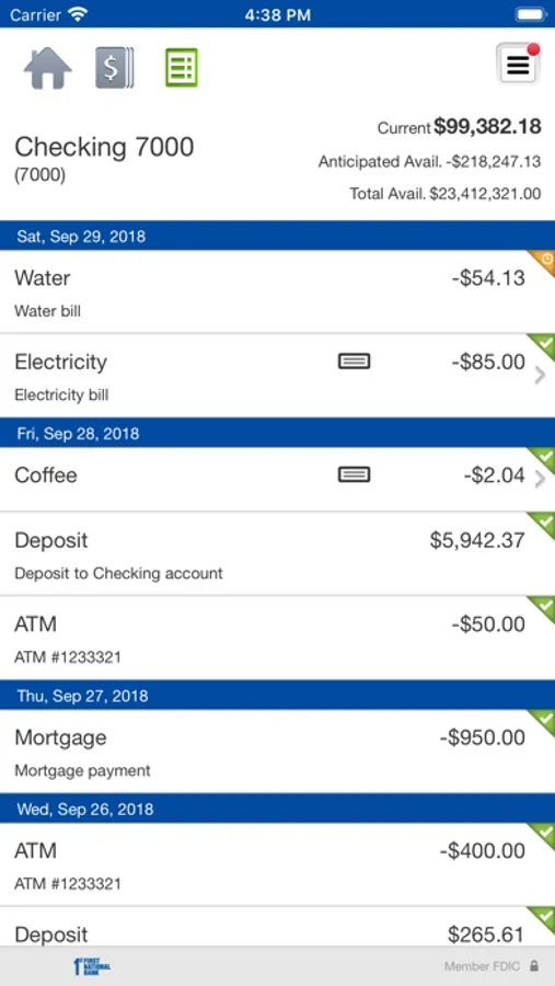 First National Bank’s Cash Management app helps you manage your business accounts anywhere with your mobile device. You can quickly and easily view transactions and check images, make transfers, deposit checks, and even approve external transfers – such as ACH and wires.