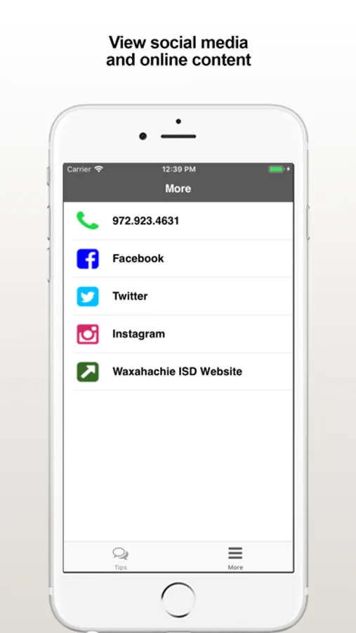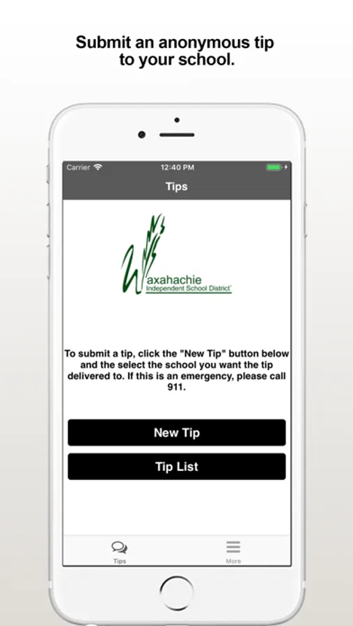 The Waxahachie ISD Tips app provides the ability to submit anonymous tips to the Waxahachie, TX School District. The app also displays organization web and social media content.