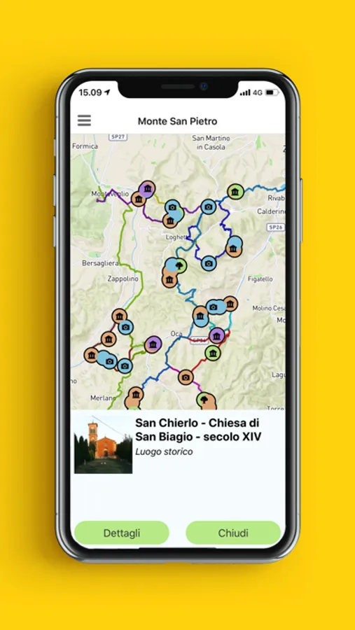 L'app consente di visualizzare una mappa topografica del territorio, disponibile anche offline, con centinaia di punti di interesse, sentieri e audioguide.