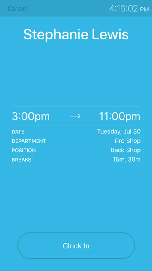 • Quickly see who’s currently working and who’s scheduled to work on any given day