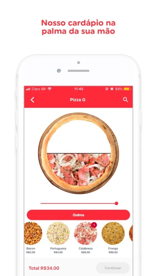 Você pode montar sua pizza de forma simples: arraste os sabores, saiba todos os ingredientes de cada sabor e tenha uma pré-visualização de como sua pizza vai ficar. Nunca foi tão fácil fazer um pedido de pizza!