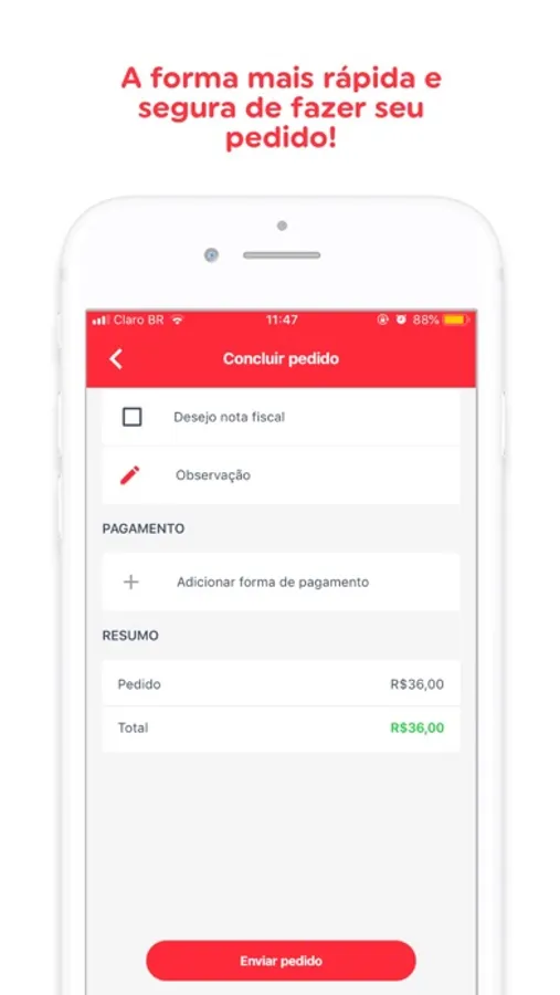 Depois de escolher o seu prato preferido, utilize o campo de observação para que tudo chegue do jeitinho que você gosta, podendo customizar os ingredientes do seu pedido.