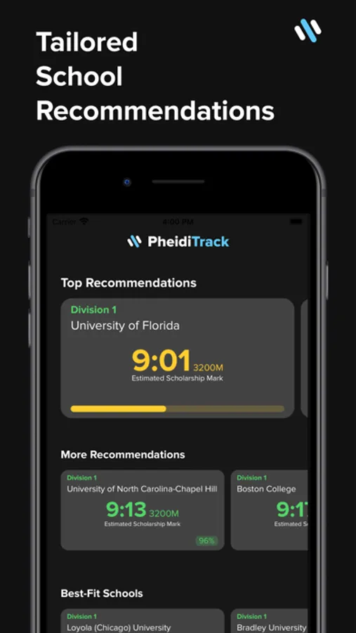 Pheidi automatically matches you with colleges across the United States. You just have to enter your times and you're done.