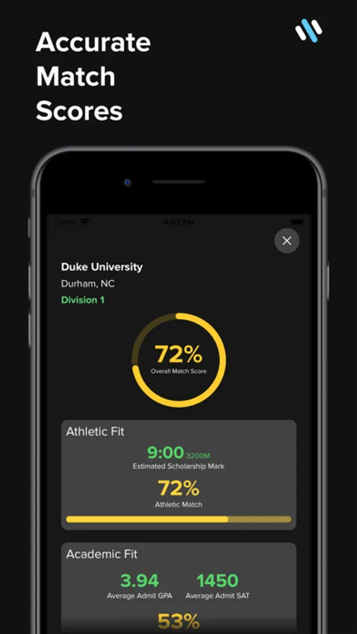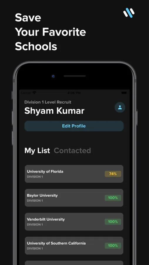 Use it to discover opportunities, quickly contact coaches, and to track your progress towards your dream school.