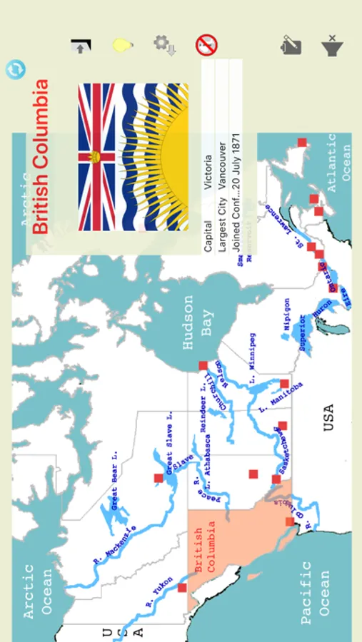 This app is about an interactive map about Canadian geography. Can study the different features of the country. Also a new Quiz mode to test your knowledge