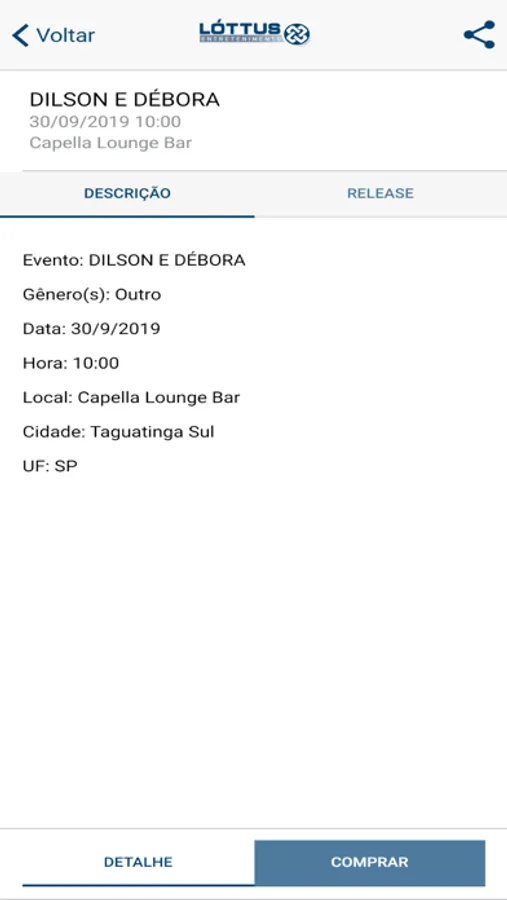 Serviço de gestão de ingressos para a Lóttus Entreterimento.