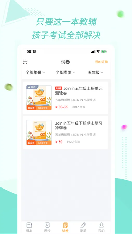 2)试题讲解课本:学生先做试卷进行测评,做完后对照答案,最后看讲解视频。通过做题操练,帮助学生及时查漏补缺,完成知识内化的闭环。