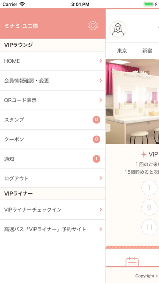 人気で混雑するパウダールームやシャワールームなどが事前に順番待ちが出来たり、利用がスムーズになる会員証やスタンプカード機能など、VIPラウンジ利用時に便利な機能が満載!