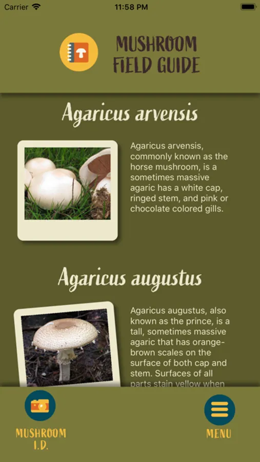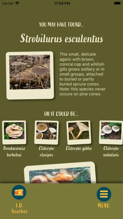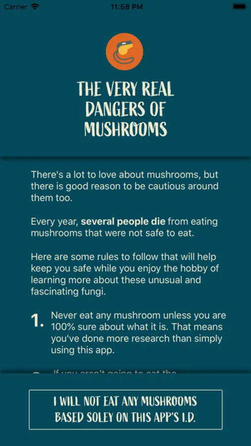 Note: don't ever eat a mushroom unless you have 100% positive identification. This app is not designed to inform on edibility of any mushroom. If that is your objective, we encourage you to search online forums and groups for people who can help you identify what you've found. This app is instead focused on figuring out what it is you're looking at when you're out in the wilderness, and may even help you learn a thing or two about how to properly identify mushrooms.