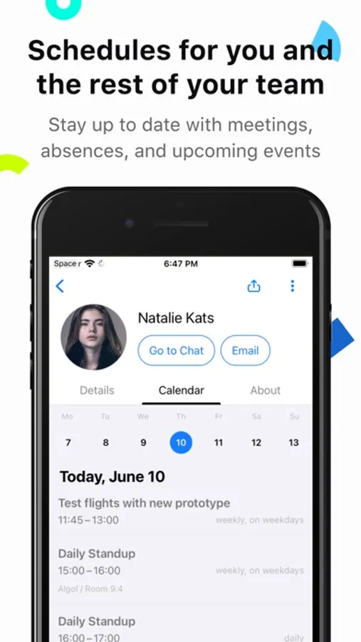 - View and manage member profiles along with their schedules, contact details, roles, teams, projects, and more.