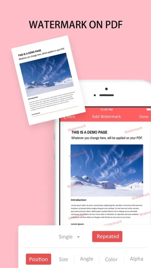 Select a PDF file from phone memory to induce a customized watermark to the file. Various watermark options like text, font, bold, normal are available to create a highly-customized watermark.