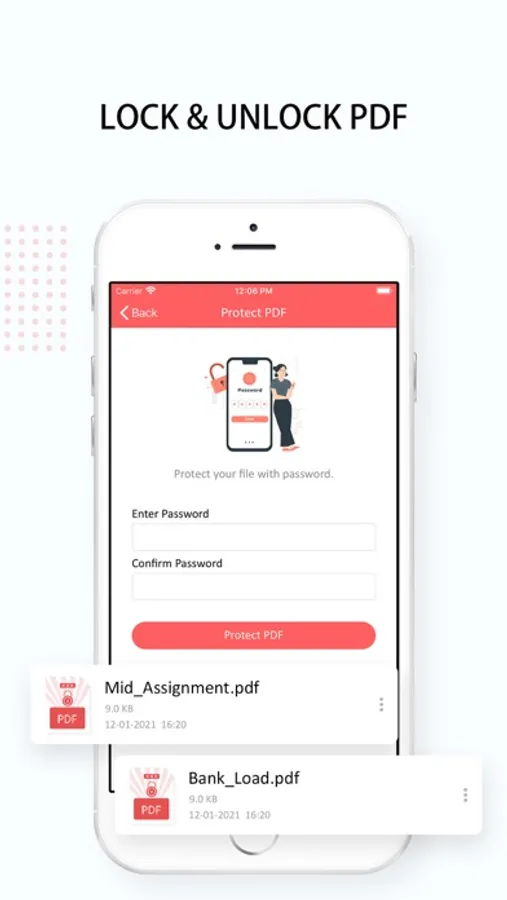 Protect any PDF file stored in the phone memory by imposing a password to access its content.