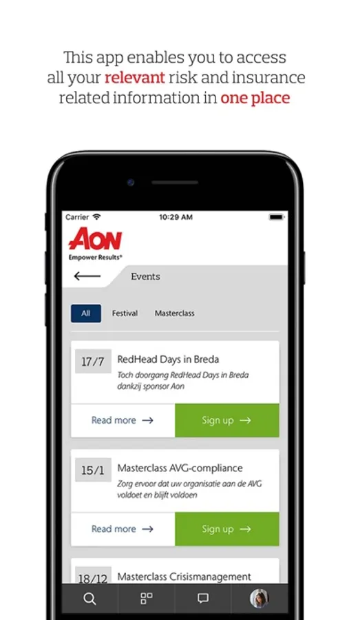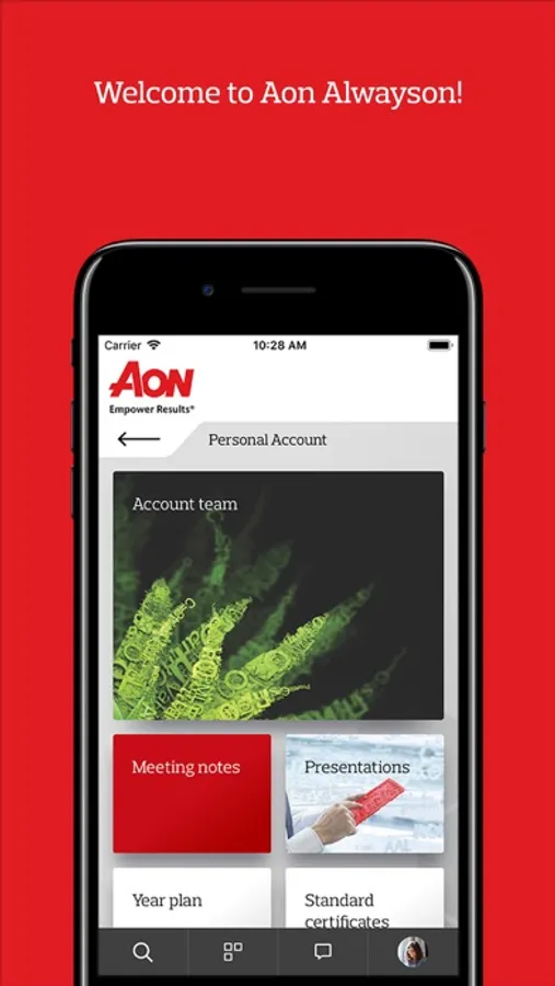 Welcome to Aon Alwayson! This app enables you to access all your relevant risk and insurance related information in one place and provides you with 24/7 availability in the palm of your hand. Download this free app for access to your personal policy documents, invoices, action lists, presentations, Aon’s insights and much more.