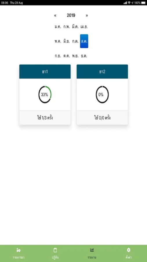 • สามารถกดเลือกว่าได้ใช้ยารายการนั้นไปแล้ว (แสดงเป็นแถบสีเขียว) หรือยังไม่ได้ใช้ยารายการนั้นได้ (แสดงเป็นแถบสีเหลือง)