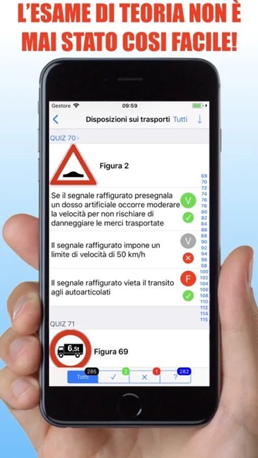 "Patenti Superiori" è l' unica applicazione per iOS che ti consente di vedere TUTTE LE RISPOSTE VERE E TUTTE LE RISPOSTE FALSE organizzate per immagine e tipo di quesito.