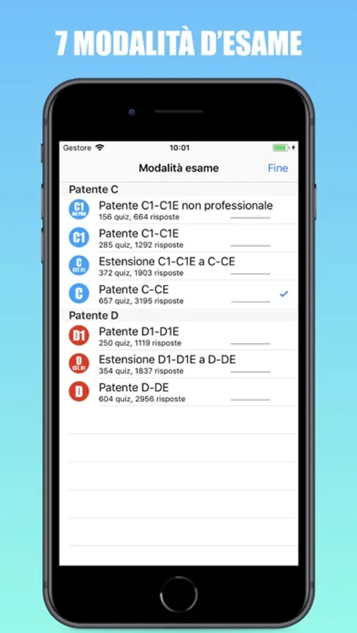 "Patenti Superiori" è la migliore applicazione per esercitarsi sui quesiti ministeriali dell'esame teorico per il conseguimento delle patenti di guida delle categorie C1-C1E, C-CE, D1-D1E, D-DE comprese le estensioni da C1-C1E a C-CE, da D1-D1E a D-DE e la patente C1-C1E non professionale.